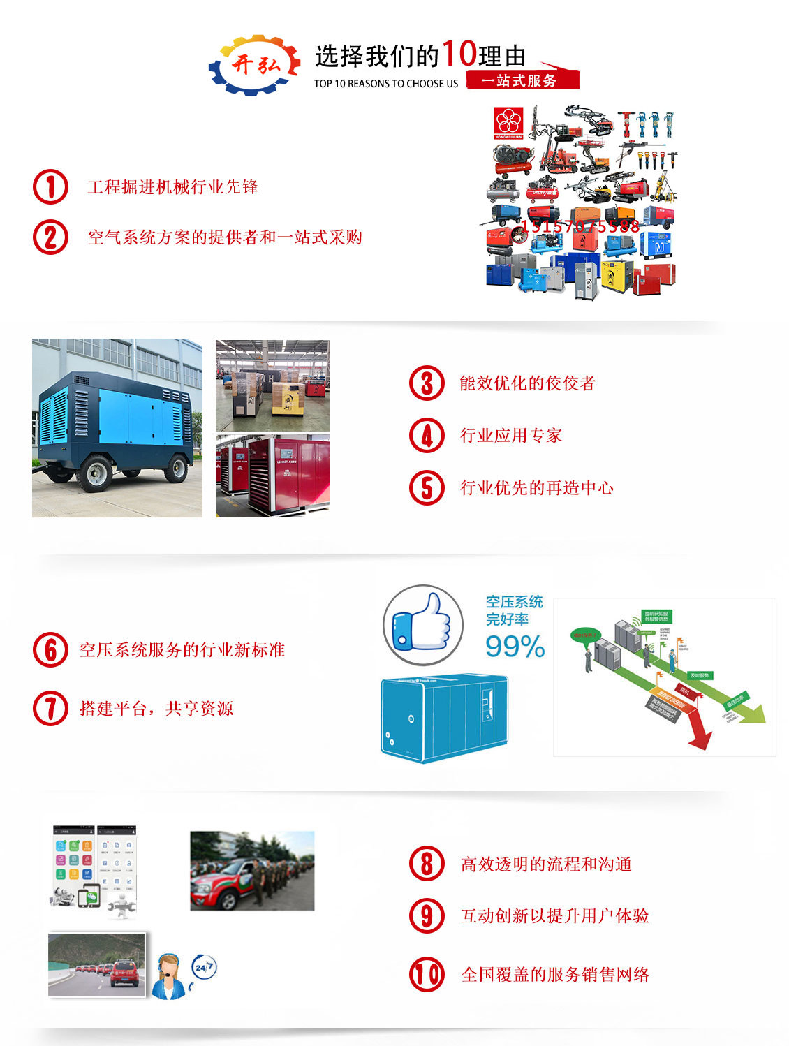 ? ? ? ? 我公司始終堅(jiān)持紅五環(huán)經(jīng)營戰(zhàn)略,堅(jiān)持中高端品牌空壓機(jī)、鉆機(jī)的經(jīng)營發(fā)展思路 ,專業(yè)于品牌空壓機(jī)、鉆機(jī)的銷售與維修服務(wù),并提供空壓機(jī)、鉆機(jī)維修及零備件供應(yīng)(鉆桿,鉆頭,沖擊器等鉆機(jī)配件;空氣濾芯、機(jī)油濾芯、油氣分離器、專用潤滑油、冷卻液……