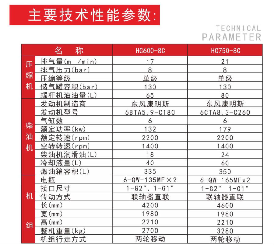 柴驅(qū)-HG系列中低壓移動(dòng)空壓機(jī)(兩輪)