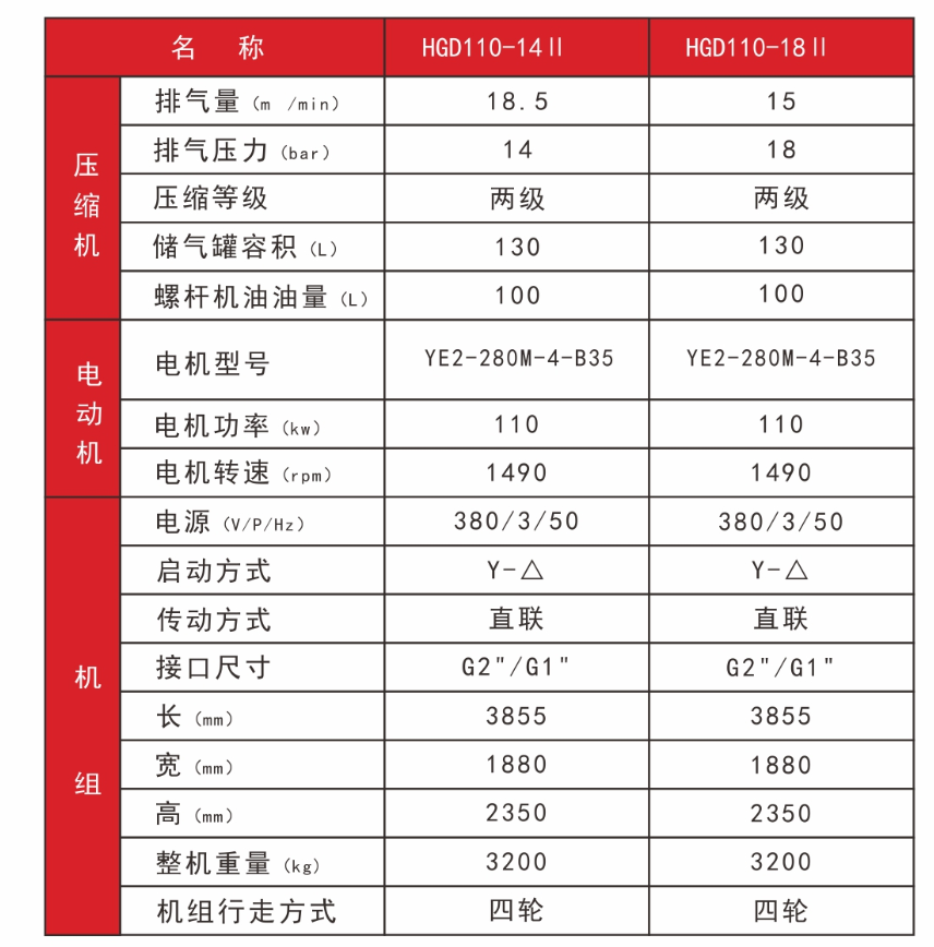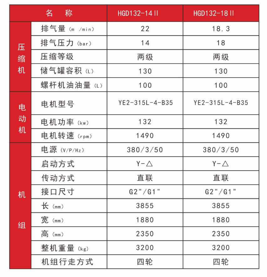 電驅HGD132Ⅱ 兩級壓縮系列 電移