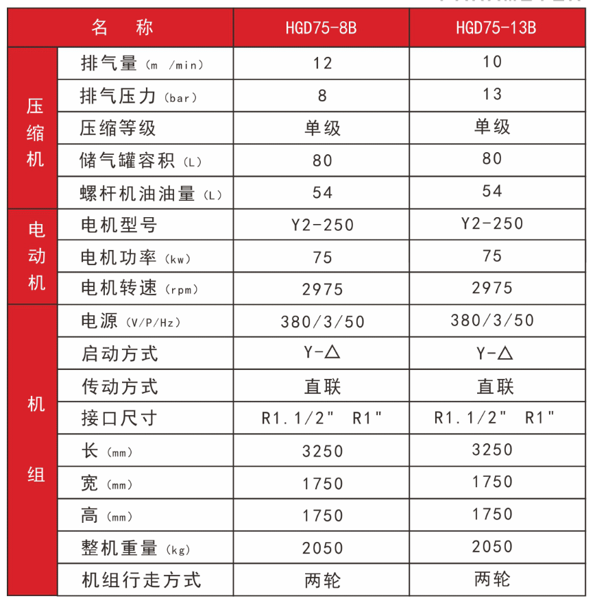 電驅-小型移動空壓機系列 HGD75、HGD90 電移