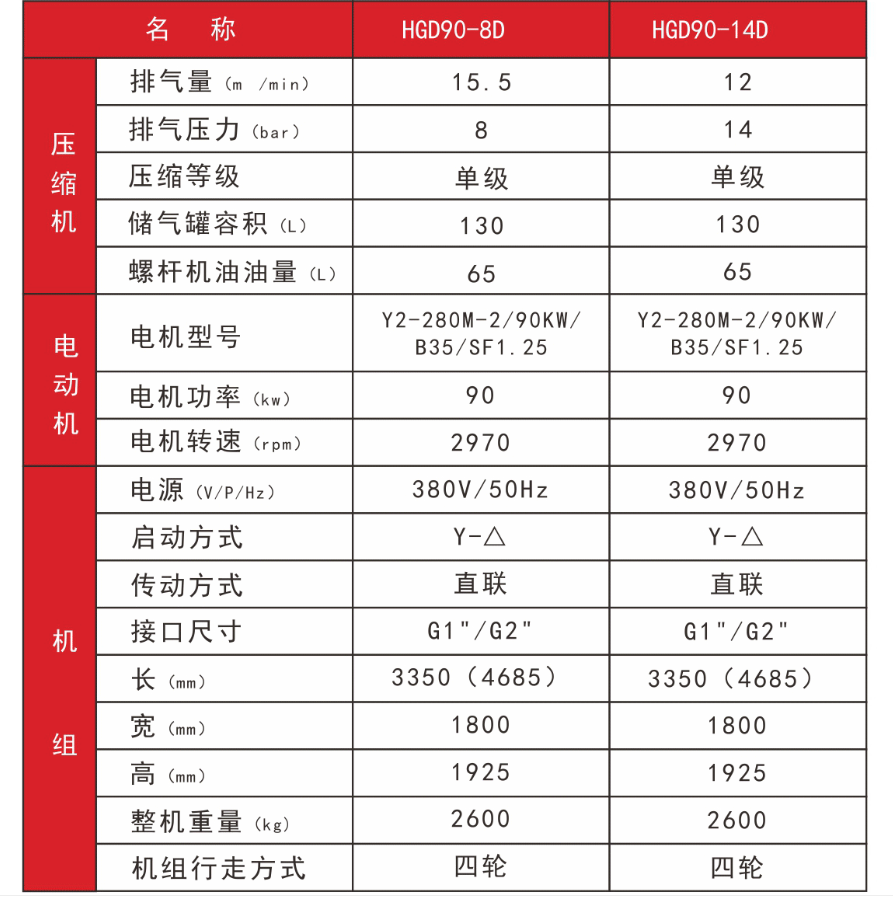 電驅-HGD中型移動空壓機系列 HGD110、HGD132 電移